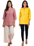 This Pack Of 2 Women's Solid Top Combo, is the ideal fusion of comfort and design, These will upgrade your wardrobe, made from a high-quality cotton that keeps you comfortable all day. Your outfit is made more sophisticated by the tasteful design. These adaptable tops is the perfect pick whether you're going to the office, on a casual trip, or to a weekend brunch. It radiates classic appeal and ups your fashion game, complete with a chinese/mandarin collar. The Women's Solid Top Combo can help you achieve modern elegance right away.