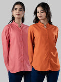 Pack Of 2 Mauve Pink And Orange Solid Viscose Shirts Combo