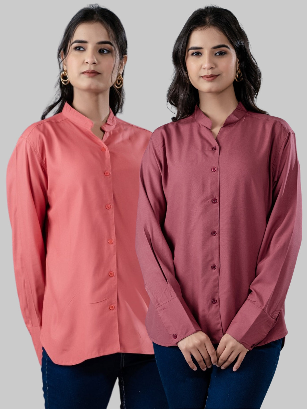 Pack Of 2 Mauve Pink And Peach Solid Viscose Shirts Combo