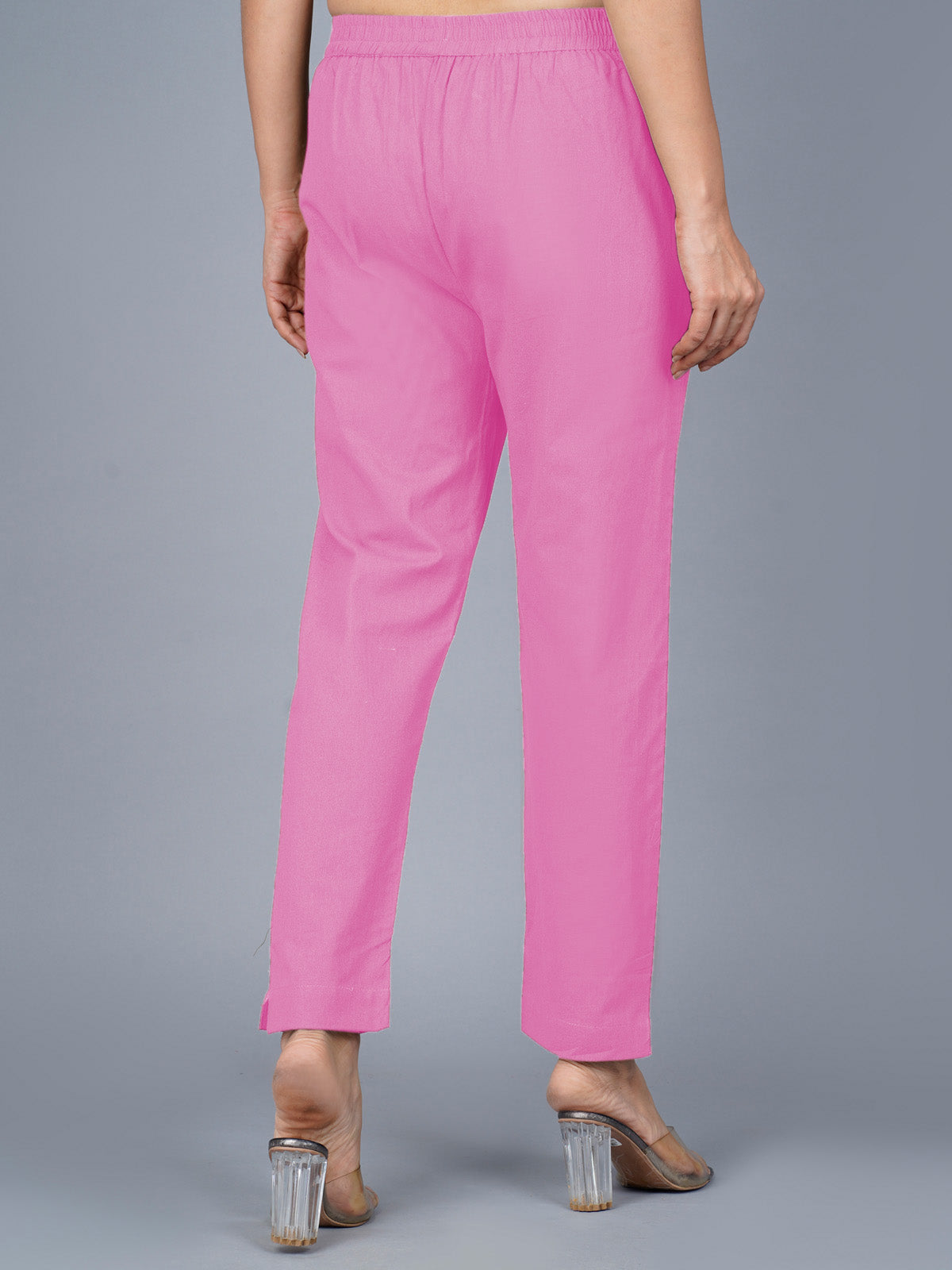Pack Of 2 Womens Regular Fit Mauve Pink And Pink Fully Elastic Waistband Cotton Trouser