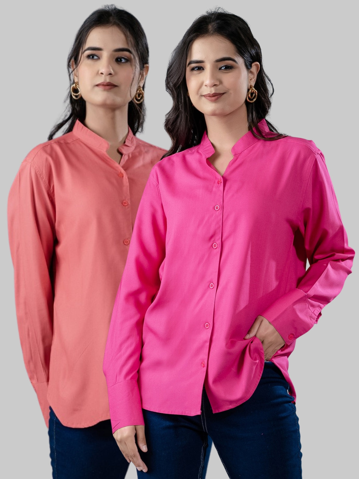 Pack Of 2 Mauve Pink And Pink Solid Viscose Shirts Combo