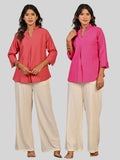 Solid Mauve Pink And Pink V Neck Viscose Pleated Tops Combo