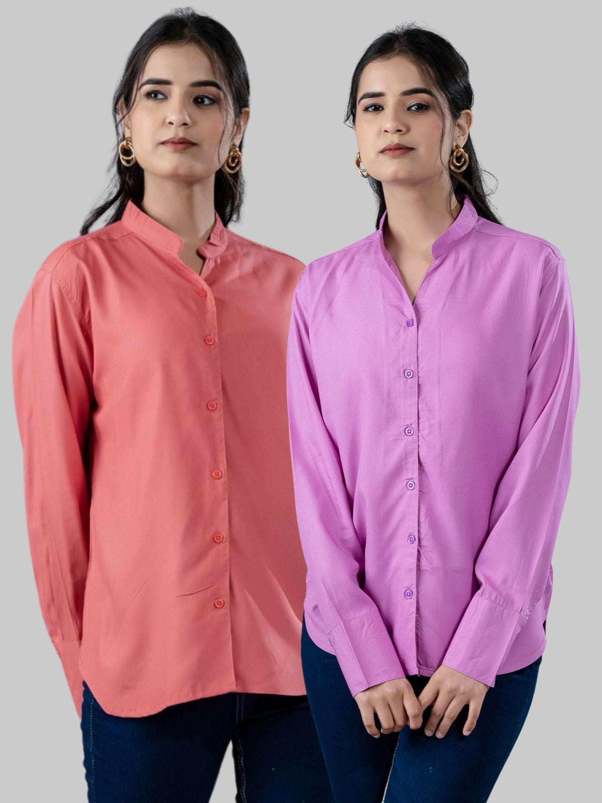 Are you looking for a stylish yet comfy women's shirts? These solid viscose rayon shirts are perfect for any event! The hip-length cut, V-shaped Mandarin collar neck, and full sleeves of these shirts give them a chic and modern look. All-day comfort and breathability are provided by the soft viscose fabric, and a snug and well-fitting fit is ensured by the button closure. These versatile pieces are ideal for casual outings, office wear, and evening events. They look great with jeans, skirts, or pants. These sophisticated and timeless shirts will add flair to your ensemble and are available in a range of colors. Invest in a chic and comfortable fashion update now. Perfect in all seasons!