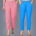 Pack Of 2 Womens Regular Fit Mauve Pink And Sky Blue Fully Elastic Waistband Cotton Trouser