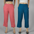 Pack Of 2 Womens Mauve Pink And Teal Blue Ankle Length Rayon Culottes Trouser Combo