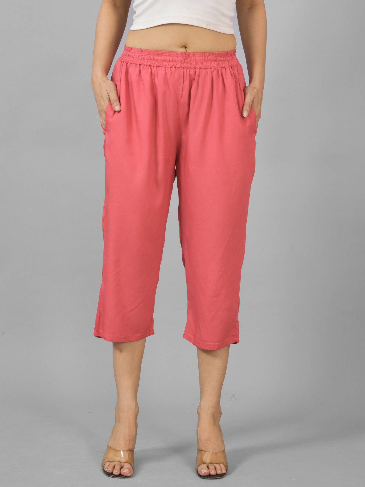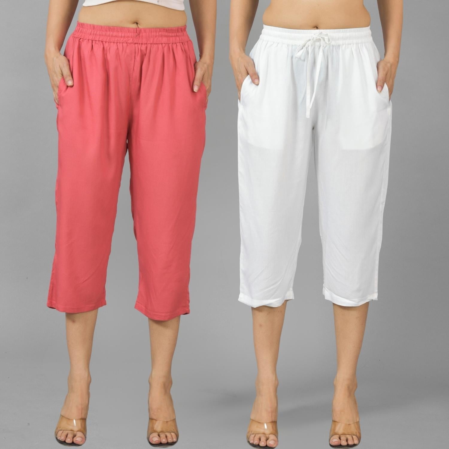 Pack Of 2 Womens Mauve Pink And White Calf Length Rayon Culottes Trouser Combo