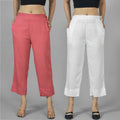 Pack Of 2 Womens Mauve Pink And White Ankle Length Rayon Culottes Trouser Combo