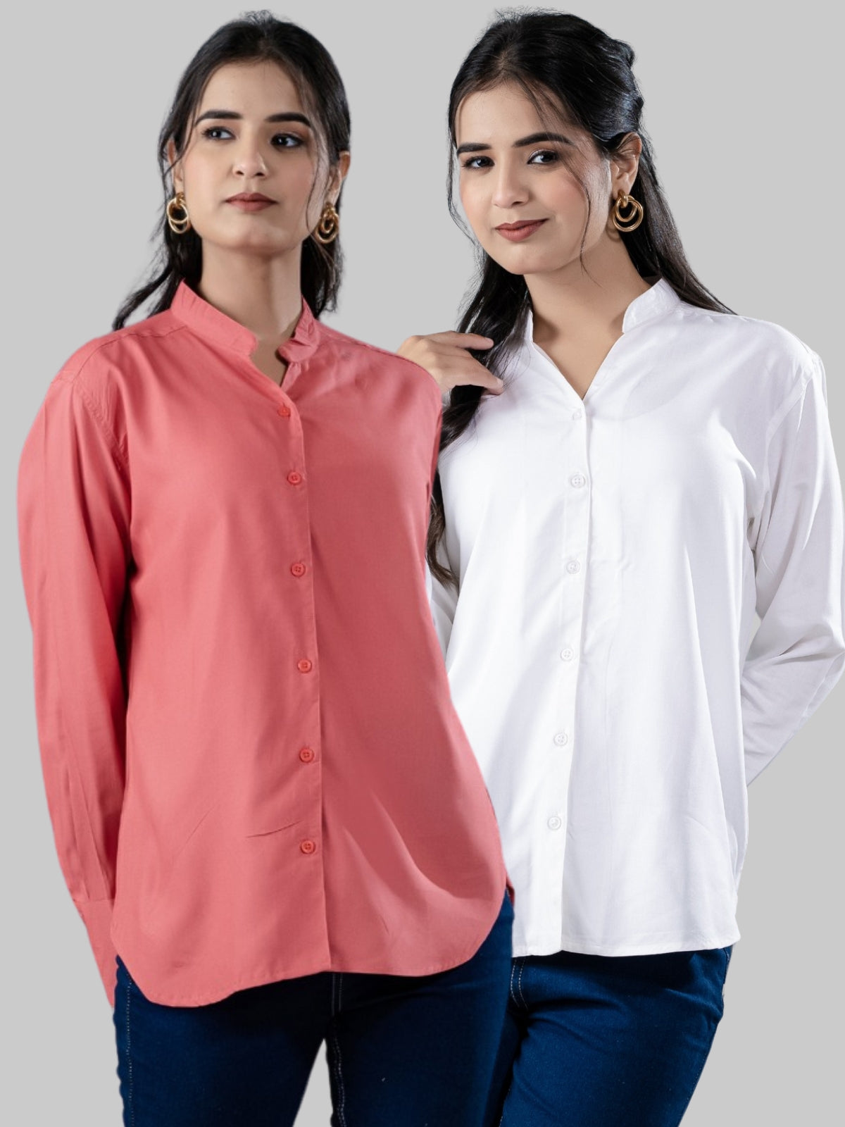 Pack Of 2 Mauve Pink And White Solid Viscose Shirts Combo