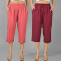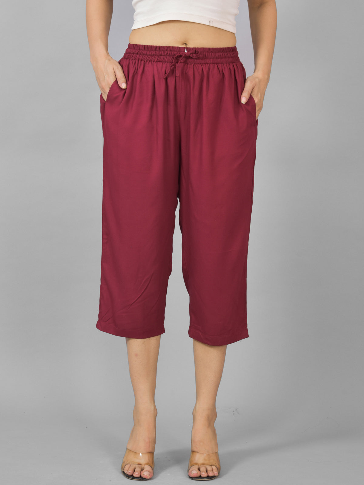 Pack Of 2 Womens Mauve Pink And Wine Calf Length Rayon Culottes Trouser Combo