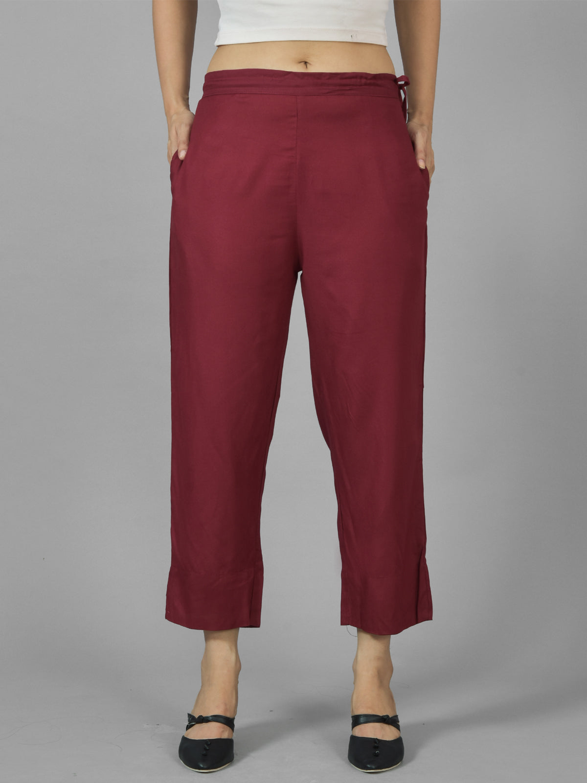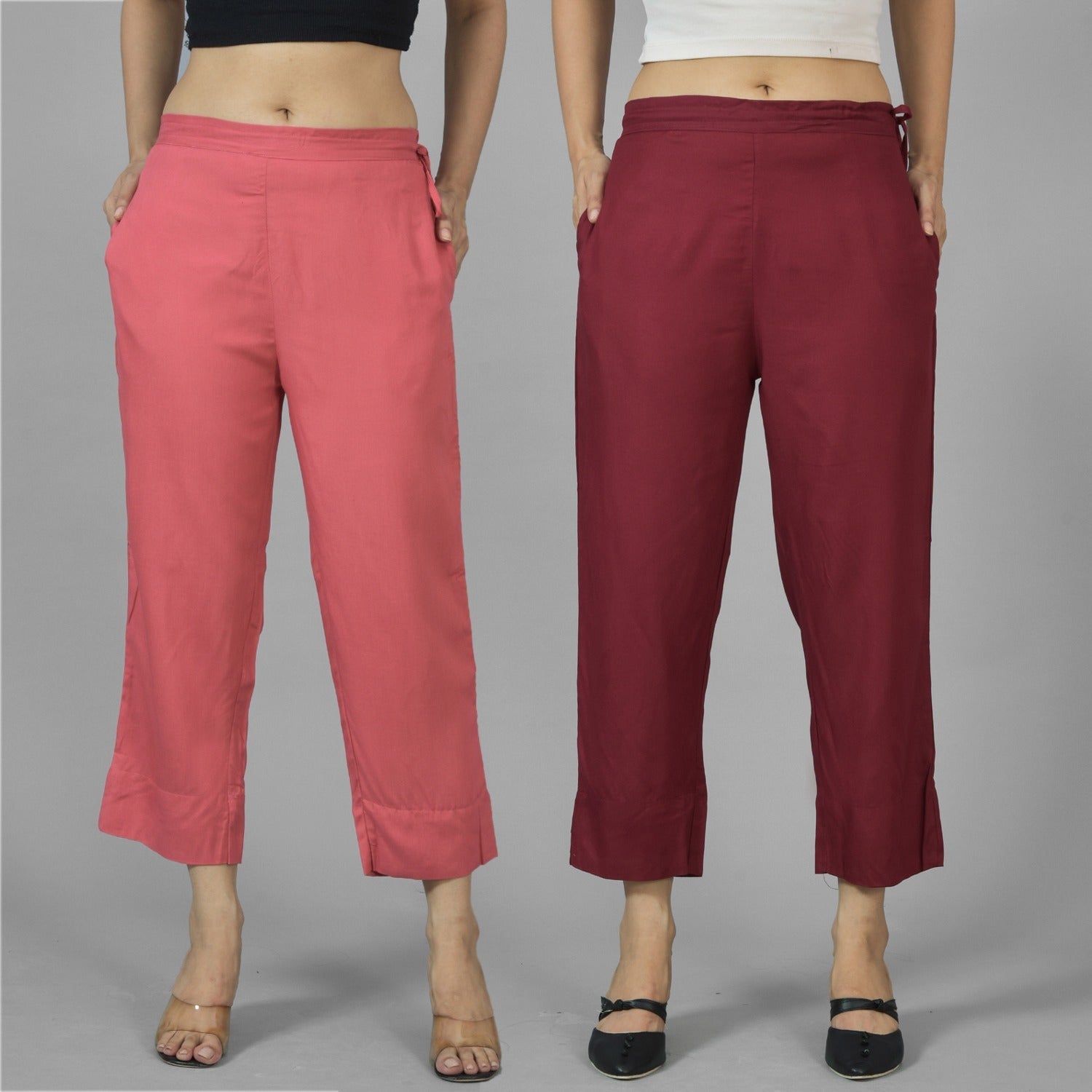 Pack Of 2 Womens Mauve Pink And Wine Ankle Length Rayon Culottes Trouser Combo