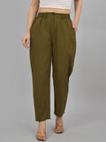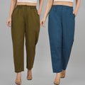 Combo Pack Of 2 Mehendi Green And Teal Blue Womens Cotton Formal Pants