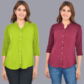 Pack Of 2 Womens Solid Mehndi Green and Wine Rayon Chinese Collar Shirts Combo