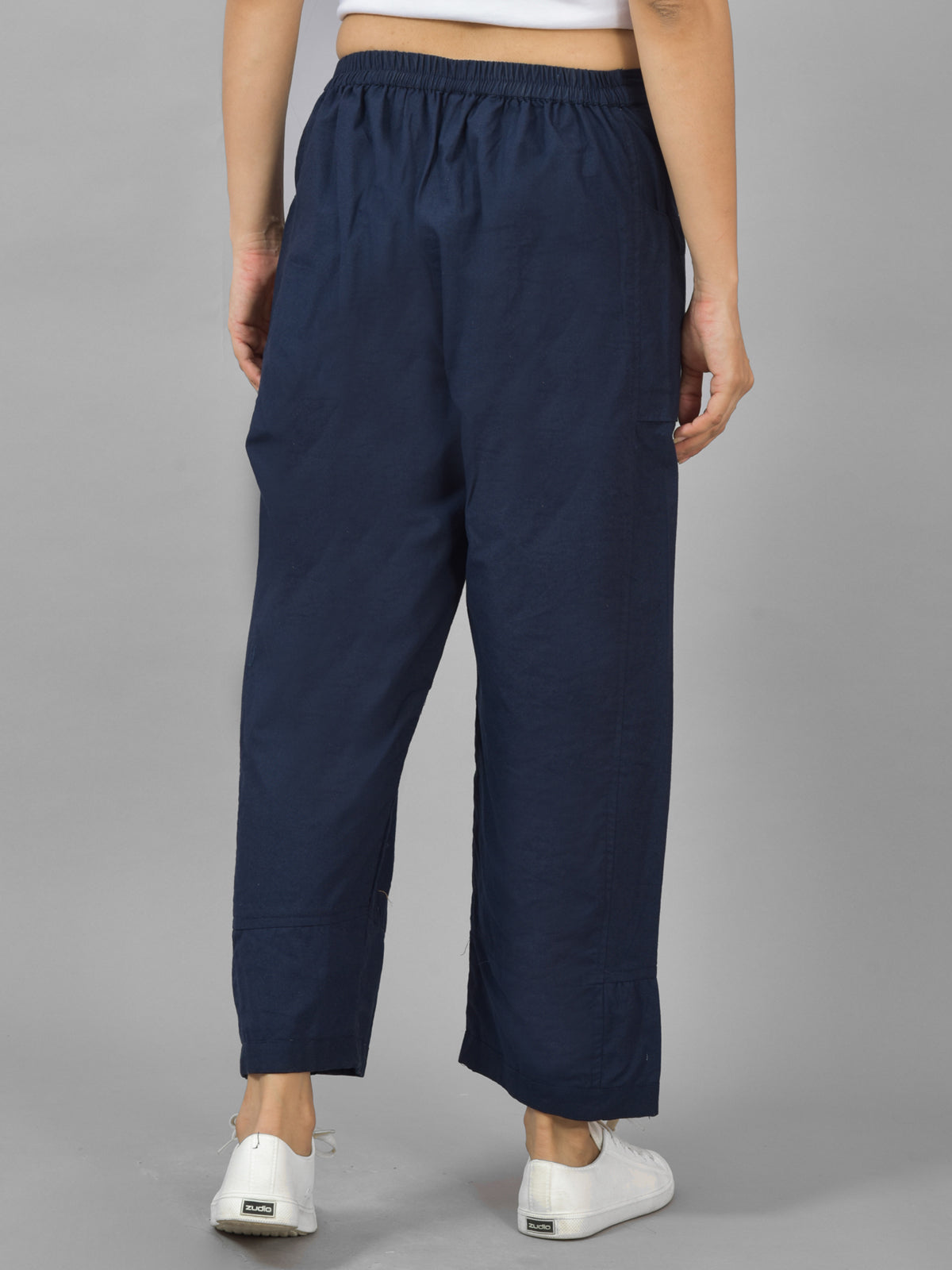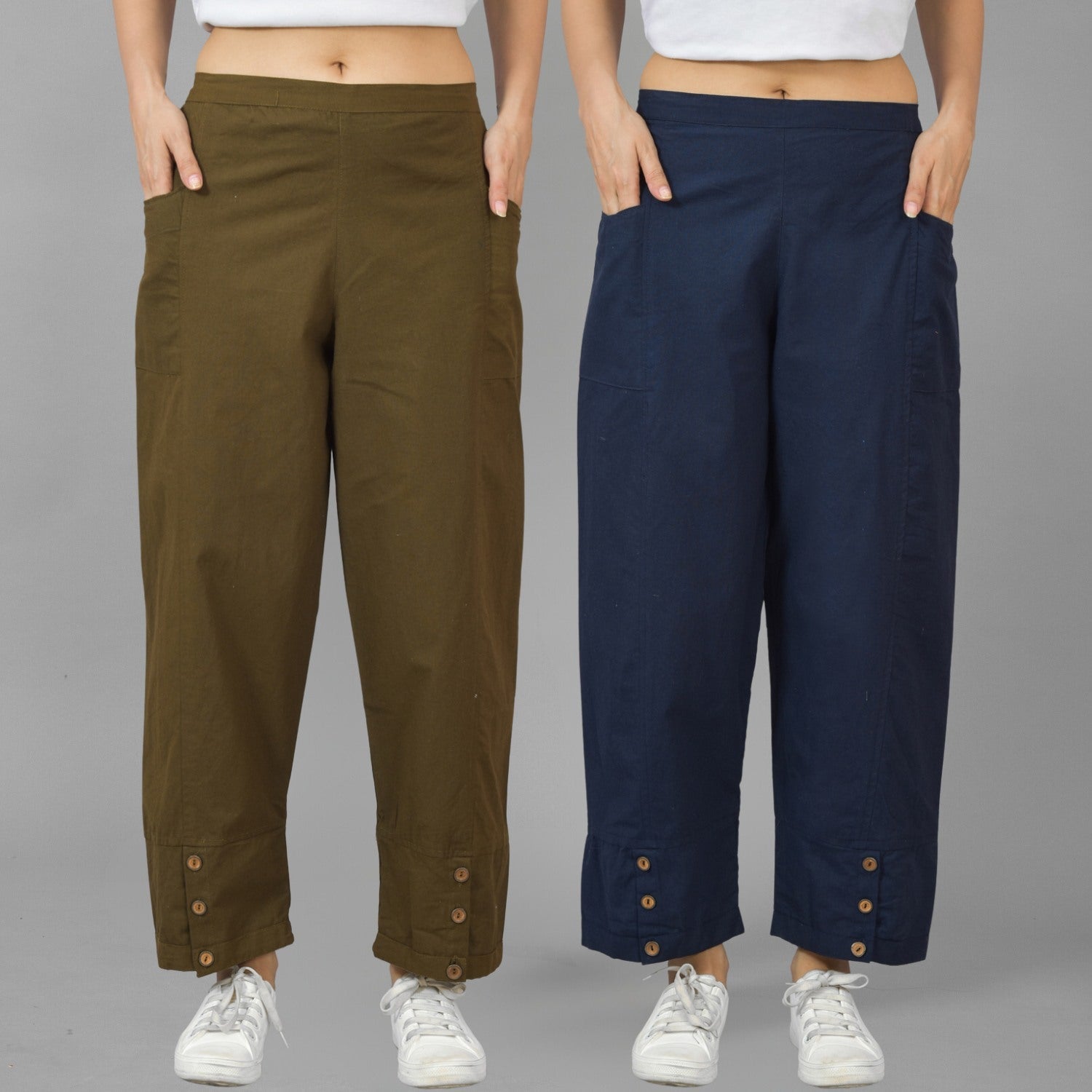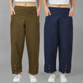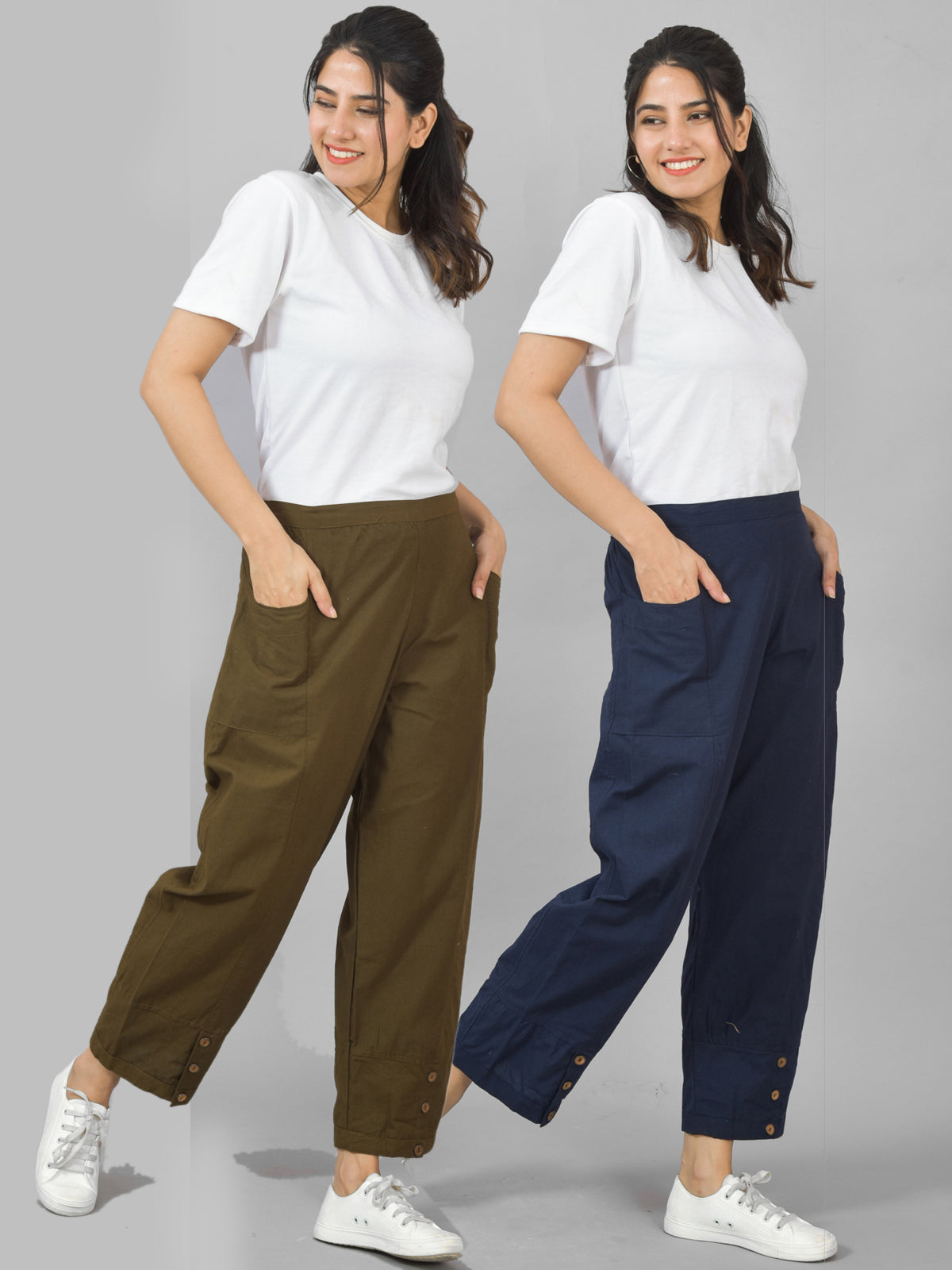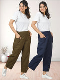 Combo Pack Of Womens Mehndi Green And Navy Blue Side Pocket Straight Cargo Pants