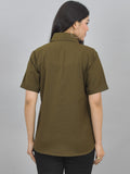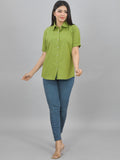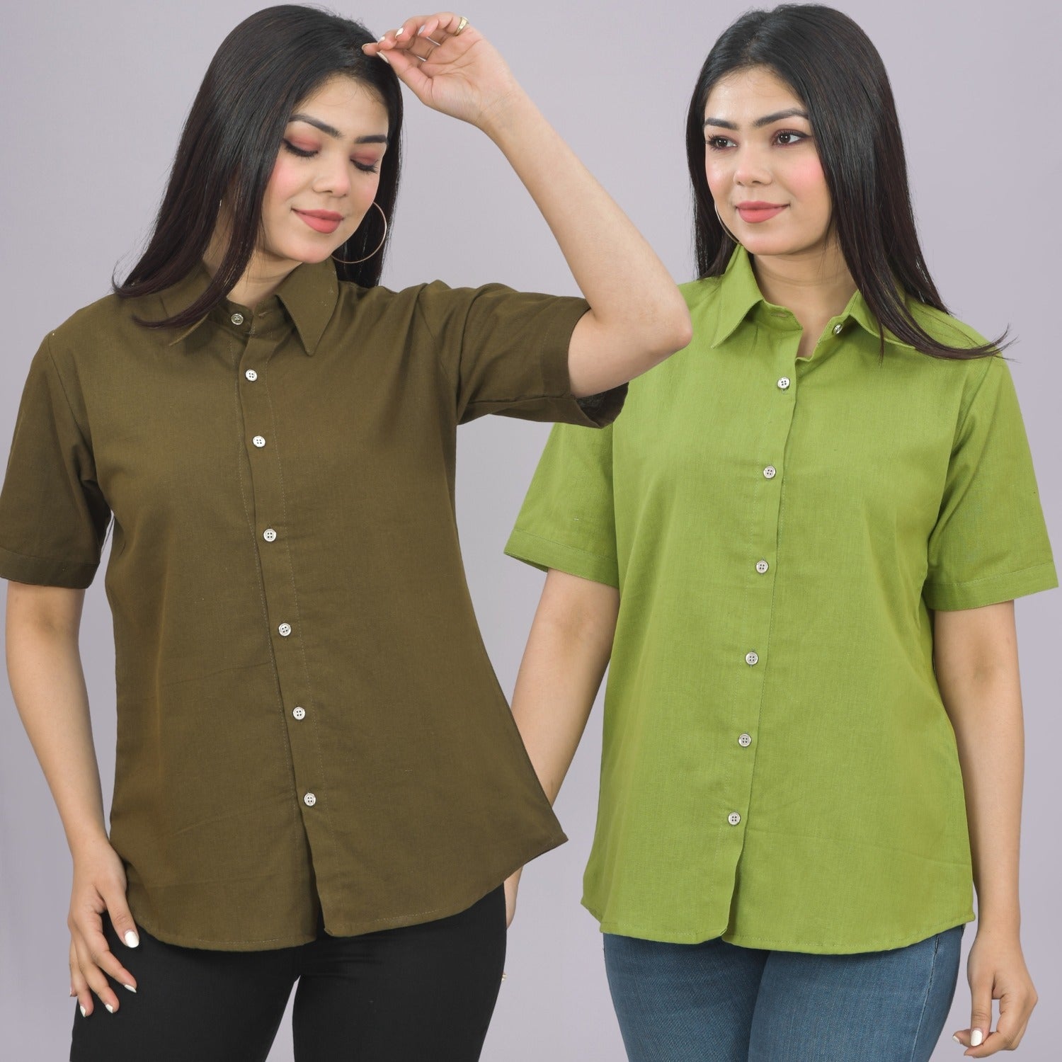 Pack Of 2 Womens Solid Mehendi And Olive Green Half Sleeve Cotton Shirts Combo