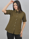 Pack Of 2 Womens Solid Mehendi And Wine Half Sleeve Cotton Shirts Combo