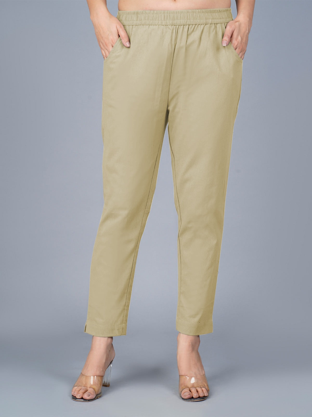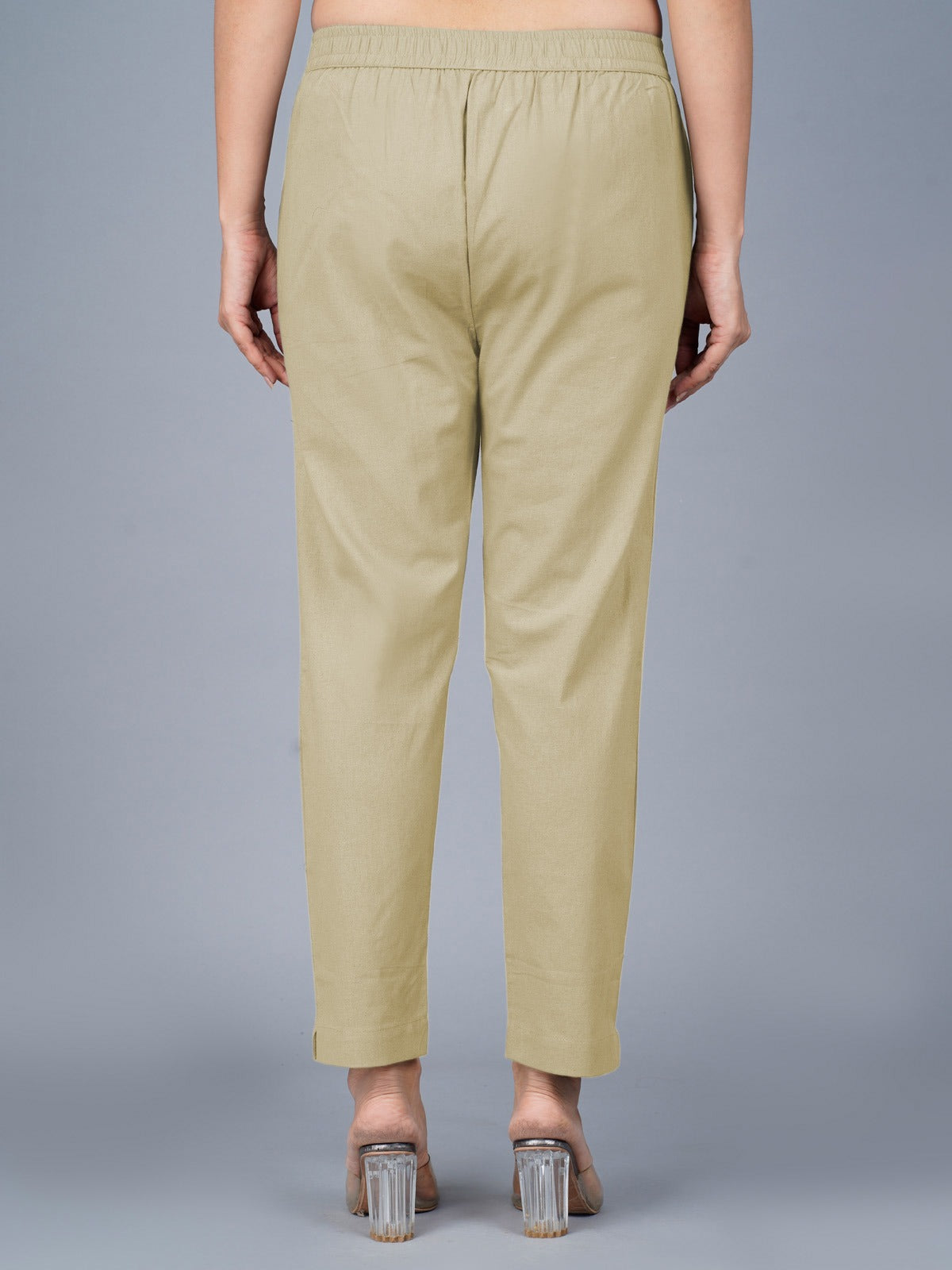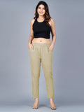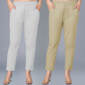Pack Of 2 Womens Regular Fit Melange Grey And Beige Fully Elastic Waistband Cotton Trouser