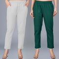Pack Of 2 Womens Regular Fit Melange Grey And Bottle Green Fully Elastic Waistband Cotton Trouser