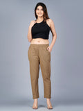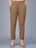 Pack Of 2 Womens Regular Fit Melange Grey And Brown Fully Elastic Waistband Cotton Trouser
