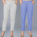 Pack Of 2 Womens Regular Fit Melange Grey And Denim Blue Fully Elastic Waistband Cotton Trouser