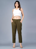 Pack Of 2 Womens Regular Fit Melange Grey And Dark Green Fully Elastic Waistband Cotton Trouser