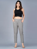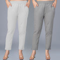 Pack Of 2 Womens Regular Fit Melange Grey And Grey Fully Elastic Waistband Cotton Trouser