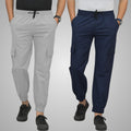 Pack Of 2 Mens Melange Grey And Navy Blue Airy Linen Summer Cool Cotton Comfort Joggers