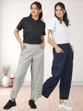 Combo Pack Of Womens Melange Grey And Navy Blue Side Pocket Straight Cargo Pants