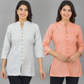 These Quaclo Women's Short Kurti Combo is expertly woven from the finest handloom cotton and will be a good choice to be added in your ethnic collection. These are elegant kurtis has a convenient 30-inch length, making it ideal for all-day wear and for small get togethers/functions as well. The glorious woven design on the front, combined with gorgeous buttons and a fashionable front-slit style, makes it complete. This outstanding addition to your wardrobe provides the ideal balance of comfort, style, and tradition at the same time.