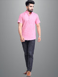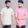 Pack of 2 Mens Solid Melange Grey And Pink Khadi Cotton Short Kurta Combo