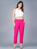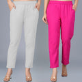 Pack Of 2 Womens Regular Fit Melange Grey And Rani Pink Fully Elastic Waistband Cotton Trouser