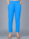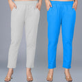 Pack Of 2 Womens Regular Fit Melange Grey And Sky Blue Fully Elastic Waistband Cotton Trouser