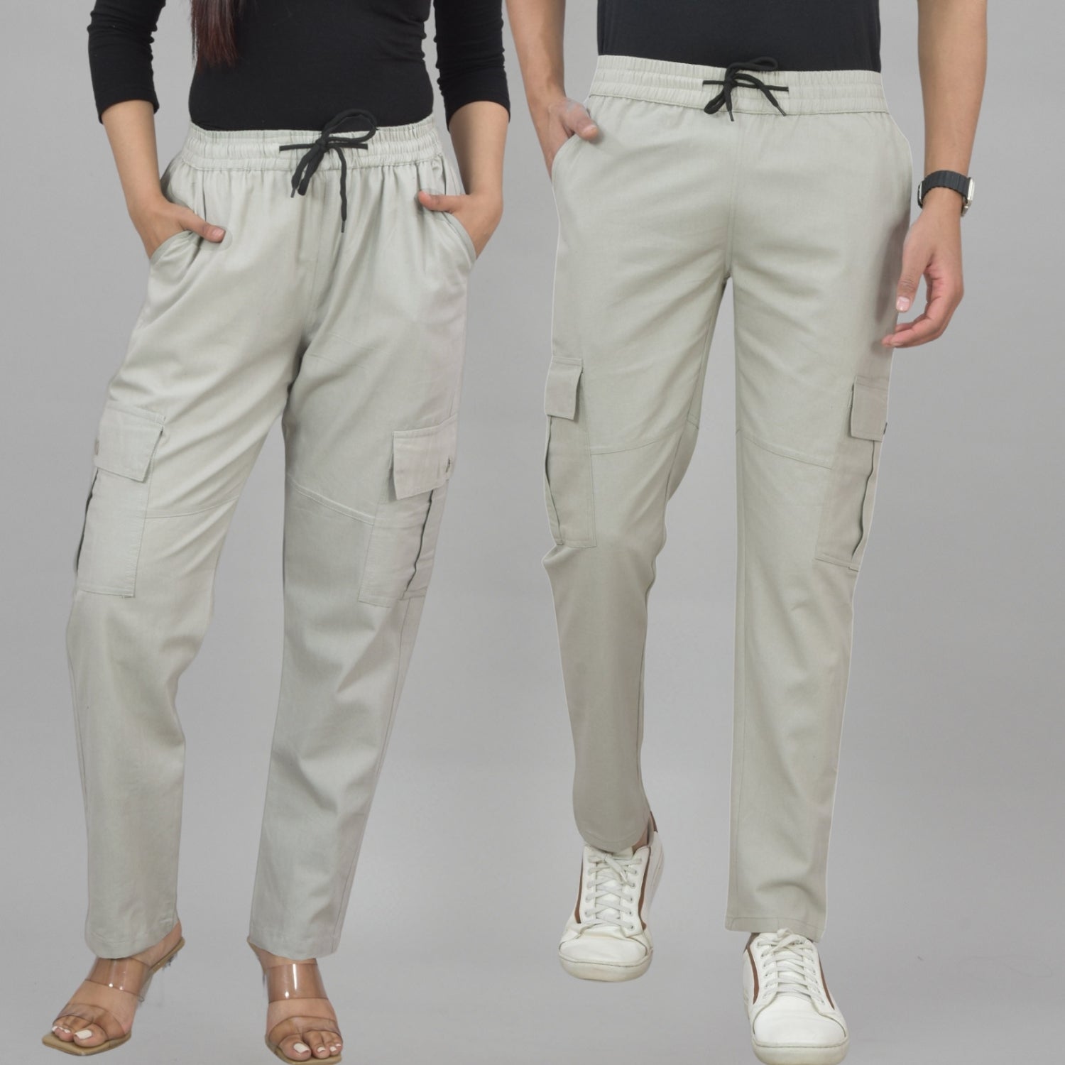 Quaclo Couple Melange Grey 5 Pocket Twill Straight Cargo