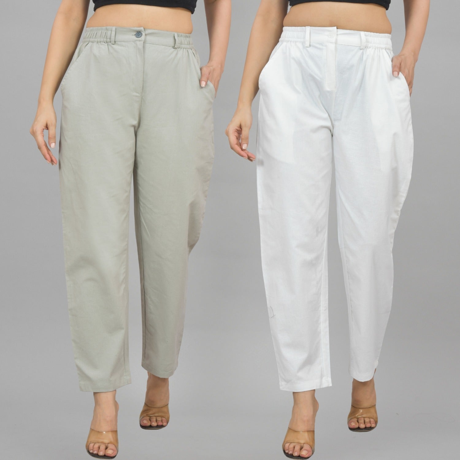 Combo Pack Of 2 Melange Grey And White Womens Cotton Formal Pants