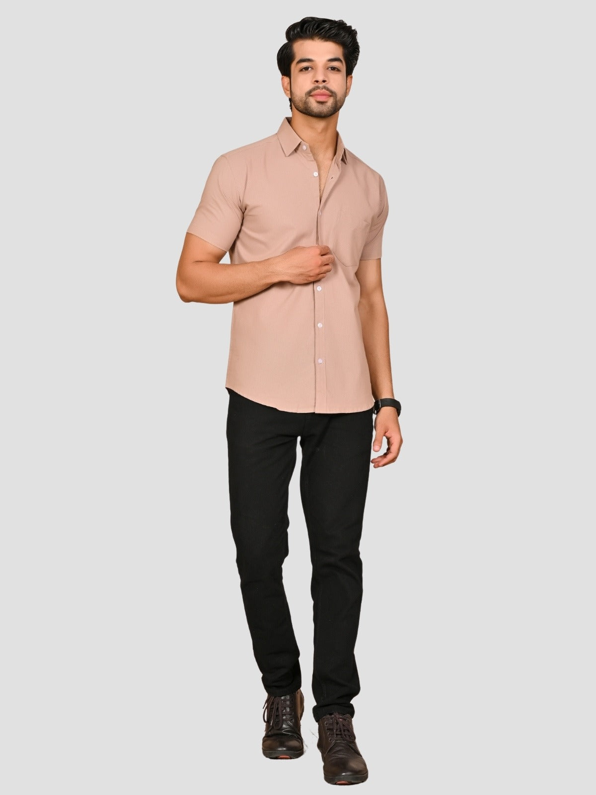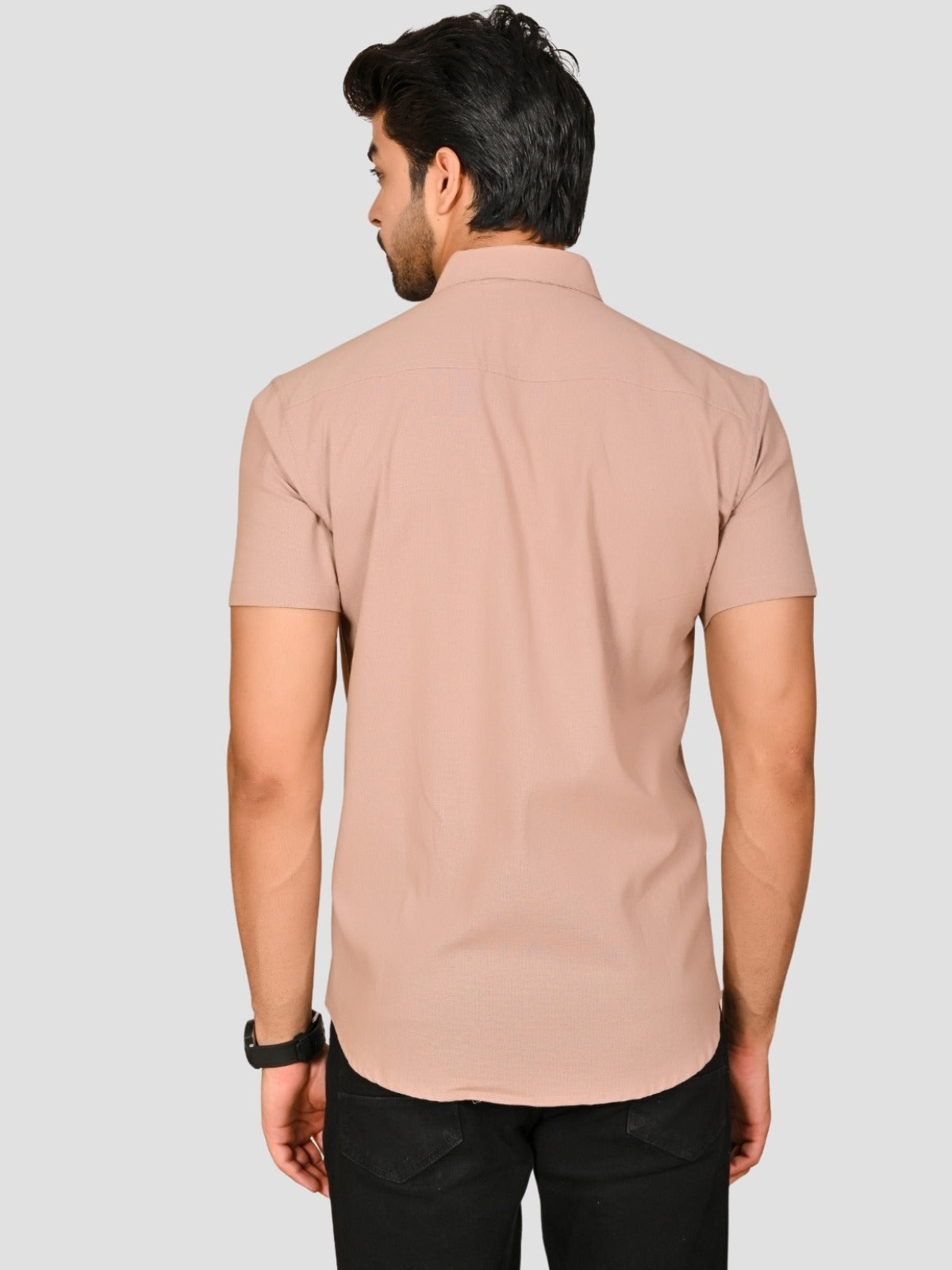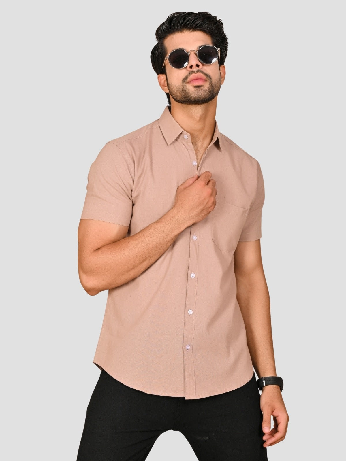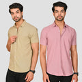 Beige And Peach Half Sleeve Linen Shirt Combo