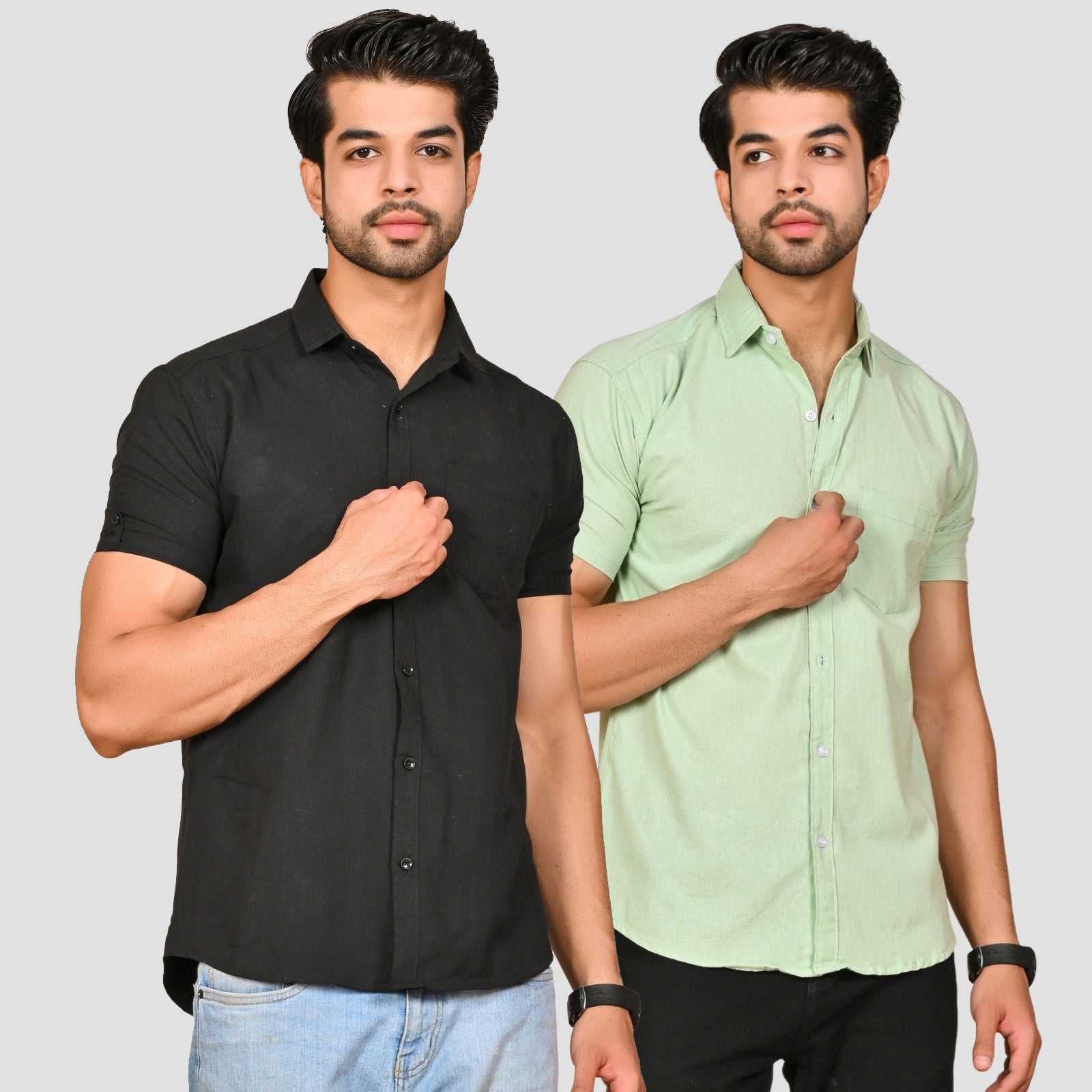 Upgrade your wardrobe with our Pack of 2 Men’s Half Sleeve Linen Shirts, designed for a stylish yet comfortable look. These shirts feature a classic spread collar and a smart button closure, making them versatile for both casual outings and semi-formal occasions. Crafted from high-quality linen fabric, they offer a breathable, lightweight feel perfect for all-day wear. The slim fit design ensures a modern, tailored appearance that complements your style effortlessly. Available in solid colors, this combo is ideal for pairing with jeans, trousers, or chinos. Whether for office wear, weekend gatherings, or evening dinners, this linen shirt set delivers both elegance and comfort. A must-have combo pack for men seeking timeless and functional fashion.