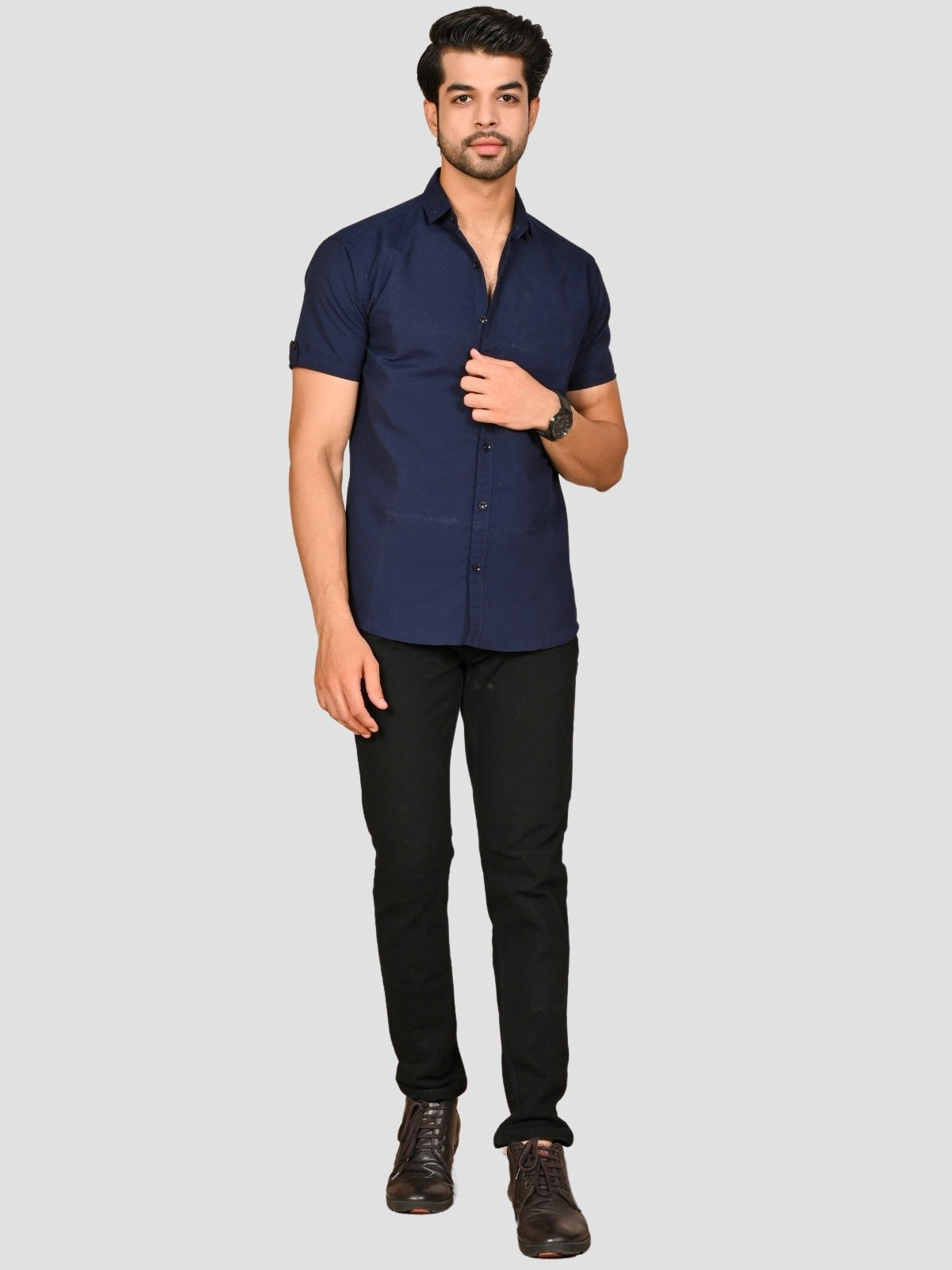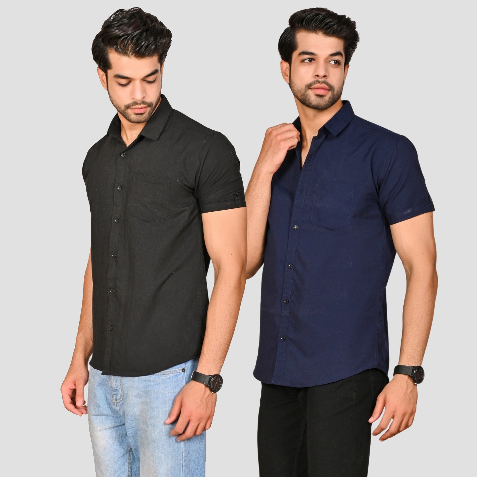 Black And Navy Blue Half Sleeve Linen Shirt Combo