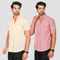 Cream And Pink Half Sleeve Linen Shirt Combo
