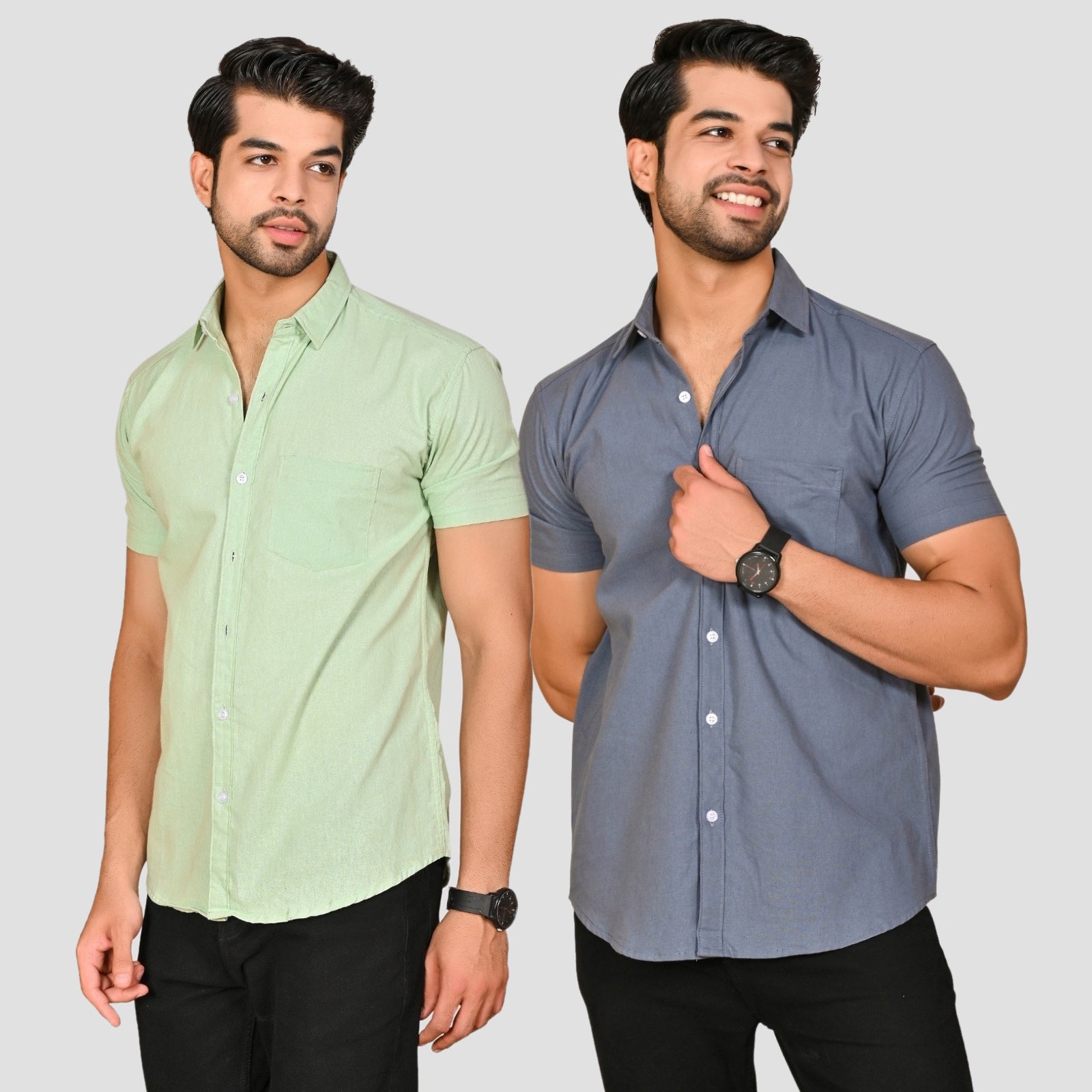 Upgrade your wardrobe with our Pack of 2 Men’s Half Sleeve Linen Shirts, designed for a stylish yet comfortable look. These shirts feature a classic spread collar and a smart button closure, making them versatile for both casual outings and semi-formal occasions. Crafted from high-quality linen fabric, they offer a breathable, lightweight feel perfect for all-day wear. The slim fit design ensures a modern, tailored appearance that complements your style effortlessly. Available in solid colors, this combo is ideal for pairing with jeans, trousers, or chinos. Whether for office wear, weekend gatherings, or evening dinners, this linen shirt set delivers both elegance and comfort. A must-have combo pack for men seeking timeless and functional fashion.