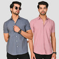 Grey And Peach Half Sleeve Linen Shirt Combo