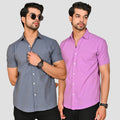 Grey And Purple Half Sleeve Linen Shirt Combo