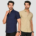 Navy Blue And Beige Half Sleeve Linen Shirt Combo