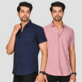 Navy Blue And Peach Half Sleeve Linen Shirt Combo