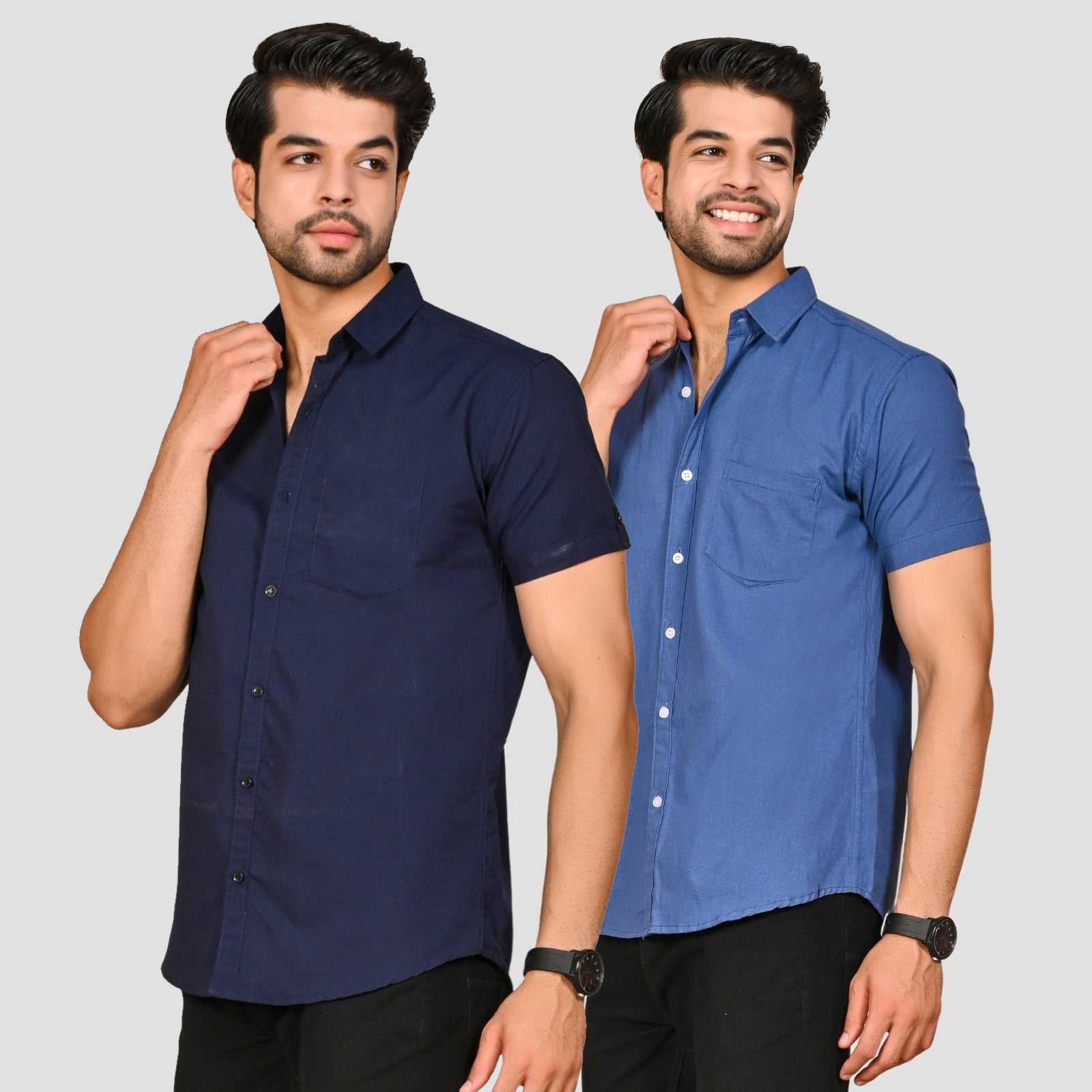 Navy Blue And Teal Blue Half Sleeve Linen Shirt Combo