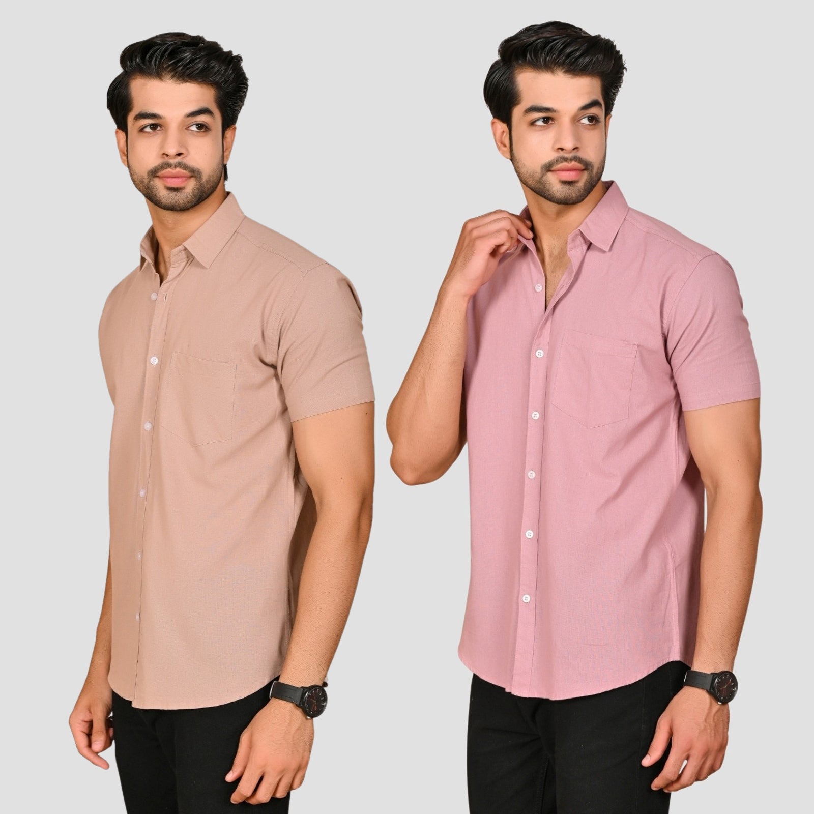 Peach And Pink Half Sleeve Linen Shirt Combo