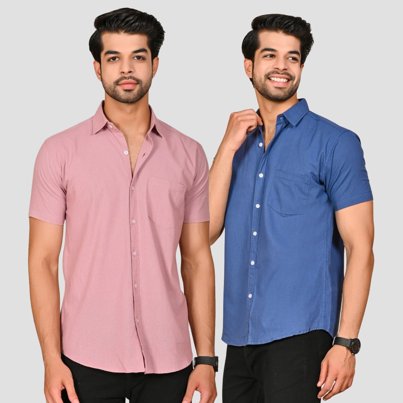 Upgrade your wardrobe with our Pack of 2 Men’s Half Sleeve Linen Shirts, designed for a stylish yet comfortable look. These shirts feature a classic spread collar and a smart button closure, making them versatile for both casual outings and semi-formal occasions. Crafted from high-quality linen fabric, they offer a breathable, lightweight feel perfect for all-day wear. The slim fit design ensures a modern, tailored appearance that complements your style effortlessly. Available in solid colors, this combo is ideal for pairing with jeans, trousers, or chinos. Whether for office wear, weekend gatherings, or evening dinners, this linen shirt set delivers both elegance and comfort. A must-have combo pack for men seeking timeless and functional fashion.