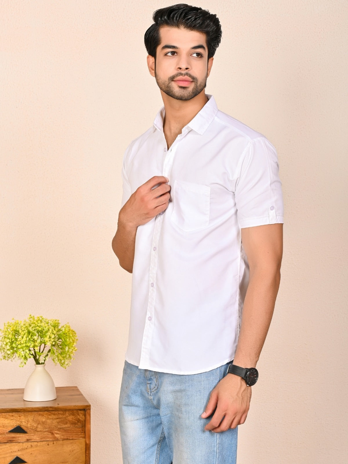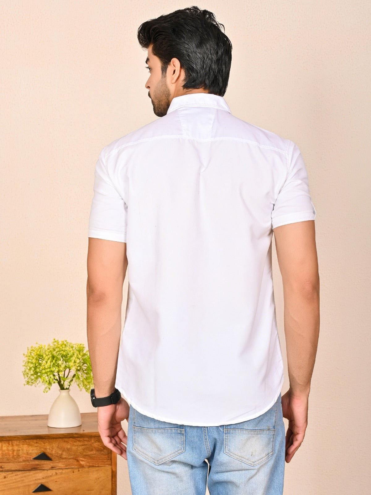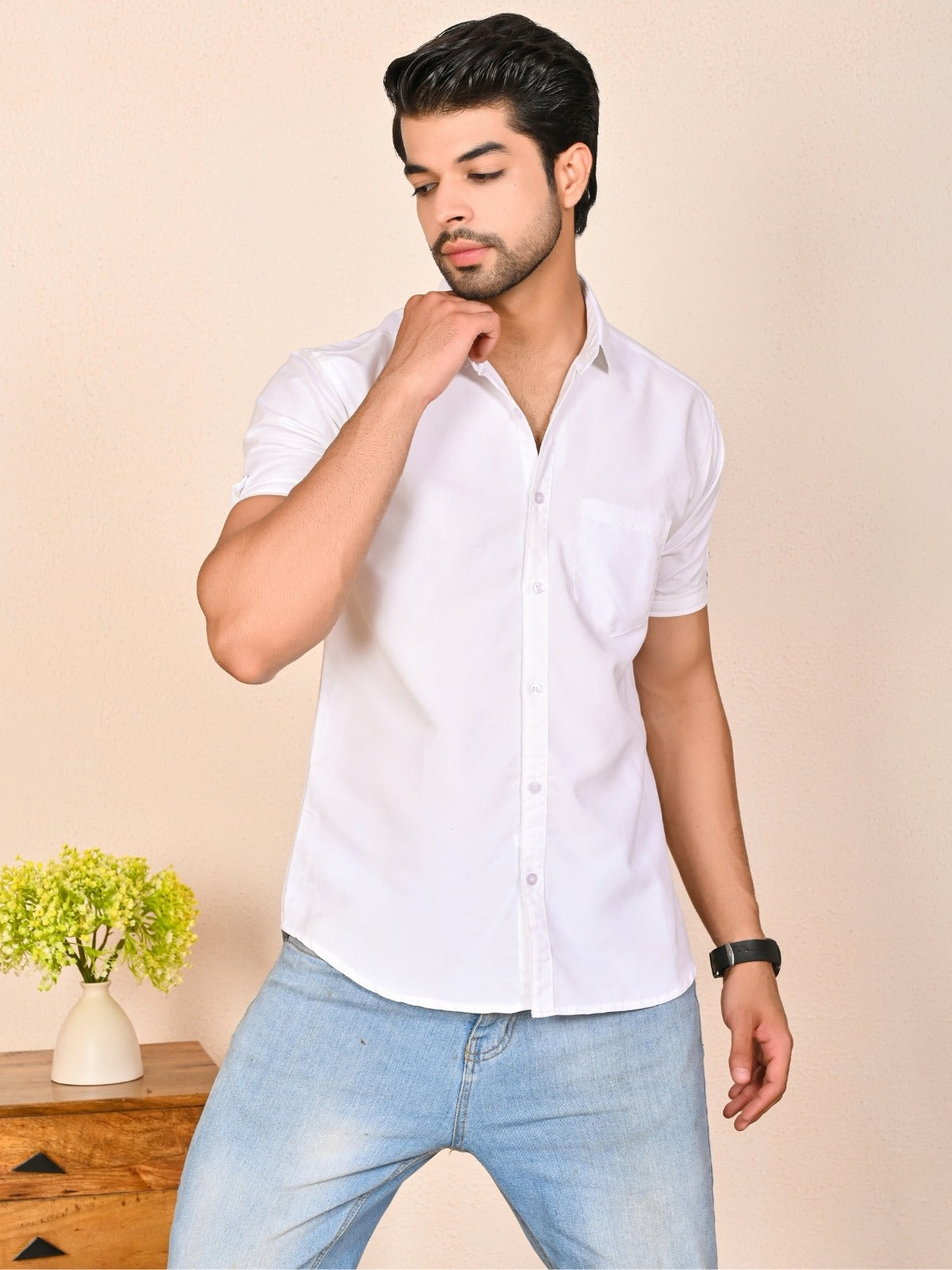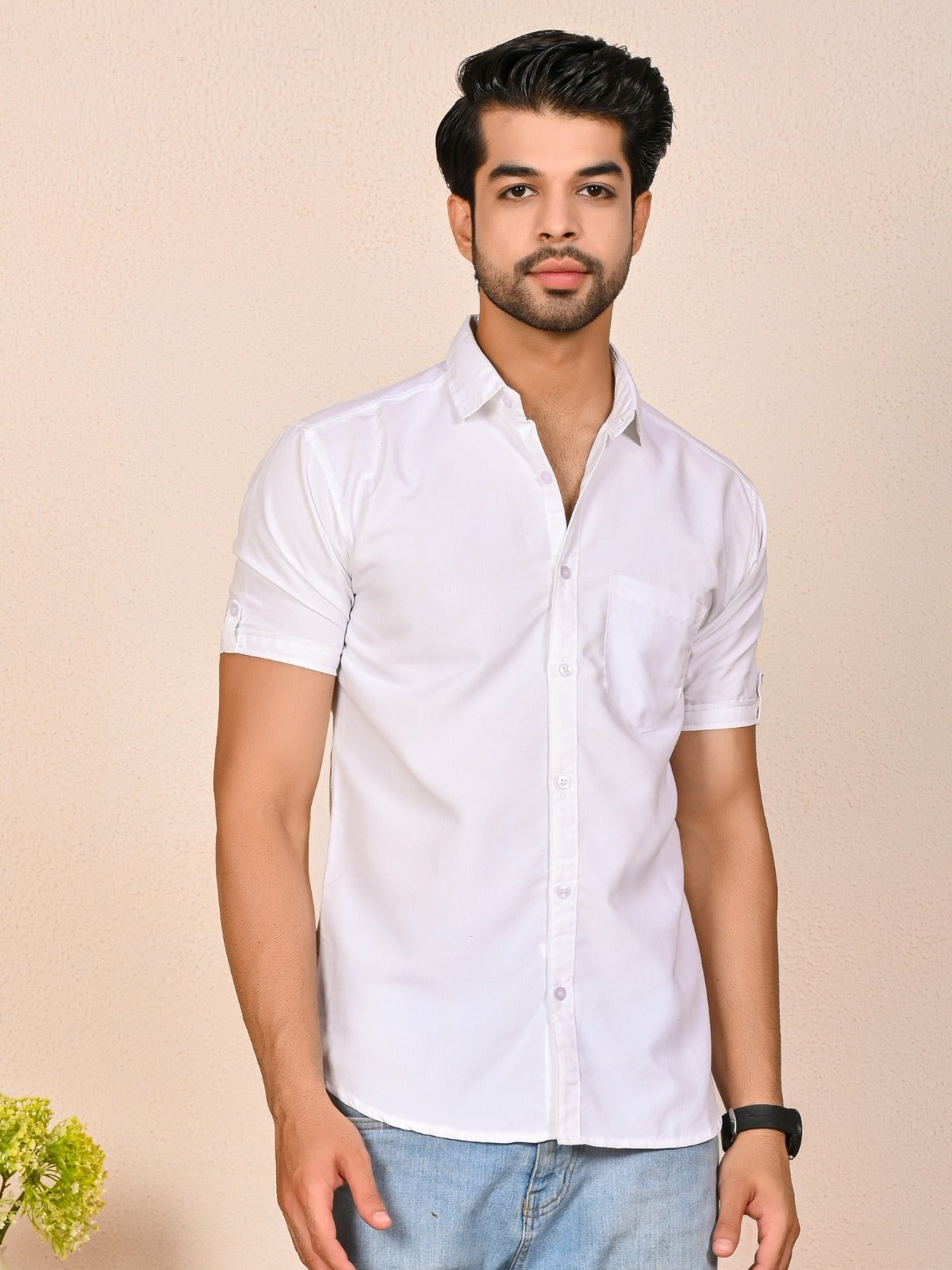 Discover the ideal fusion of comfort and style with the Quaclo Men's Half Sleeve Cotton Shirt. With its tailored fit that highlights the shape of your body, this slim-fit shirt is perfect for semi-formal and casual events. Because it is made of premium cotton fabric, it guarantees comfort and breathability all day. The spread collar adds a classic touch, and the half sleeves give off an air of comfort. Its full-length design gives it flexibility; it goes well with trousers, chinos, or jeans. The Quaclo Men's Shirt is your go-to for relaxed style and confidence, whether you're dressing up for a weekend excursion or a day at the office. Select Quaclo when you want timeless style and superior quality.