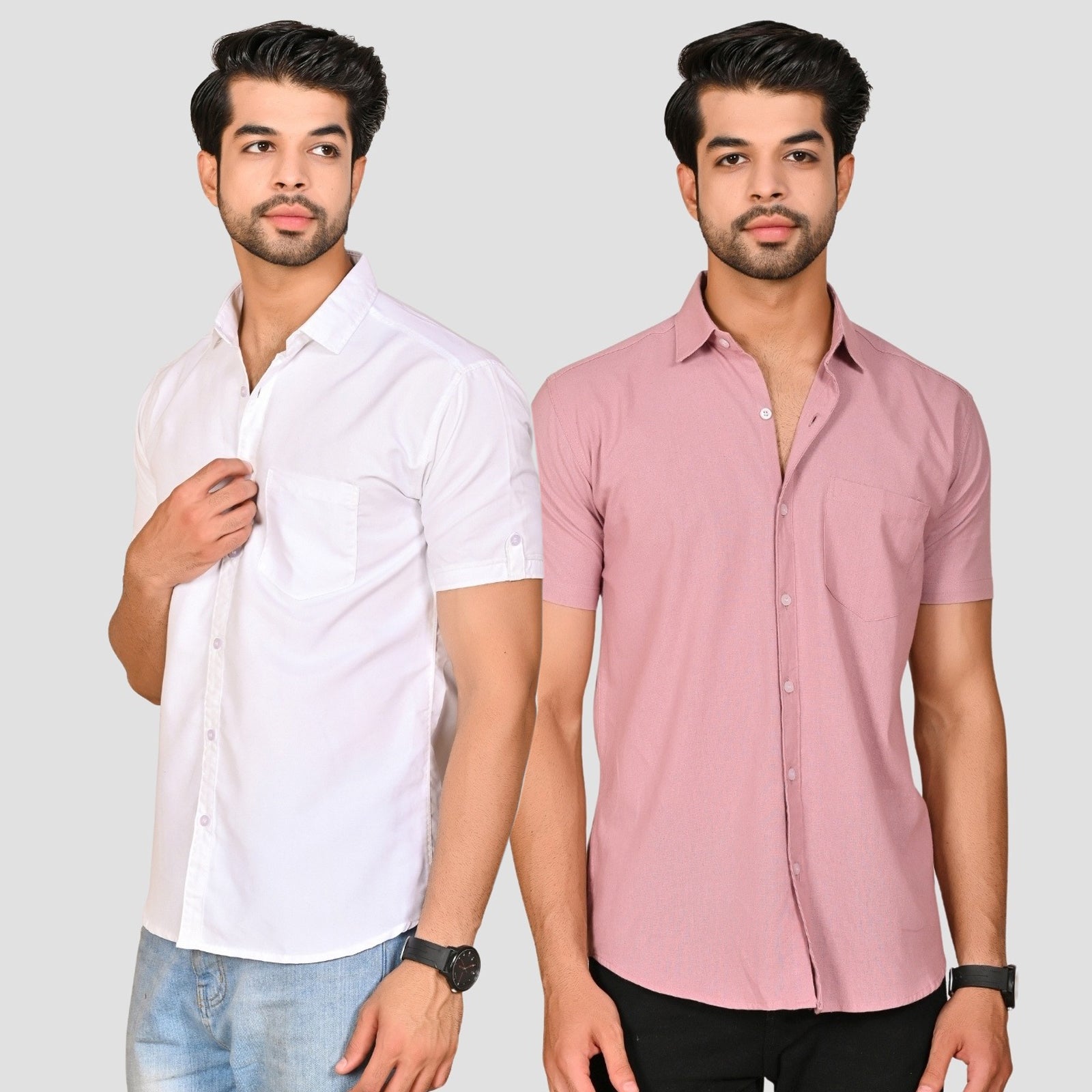 Upgrade your wardrobe with our Pack of 2 Men’s Half Sleeve Linen Shirts, designed for a stylish yet comfortable look. These shirts feature a classic spread collar and a smart button closure, making them versatile for both casual outings and semi-formal occasions. Crafted from high-quality linen fabric, they offer a breathable, lightweight feel perfect for all-day wear. The slim fit design ensures a modern, tailored appearance that complements your style effortlessly. Available in solid colors, this combo is ideal for pairing with jeans, trousers, or chinos. Whether for office wear, weekend gatherings, or evening dinners, this linen shirt set delivers both elegance and comfort. A must-have combo pack for men seeking timeless and functional fashion.