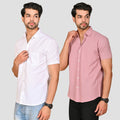 White And Pink Half Sleeve Linen Shirt Combo