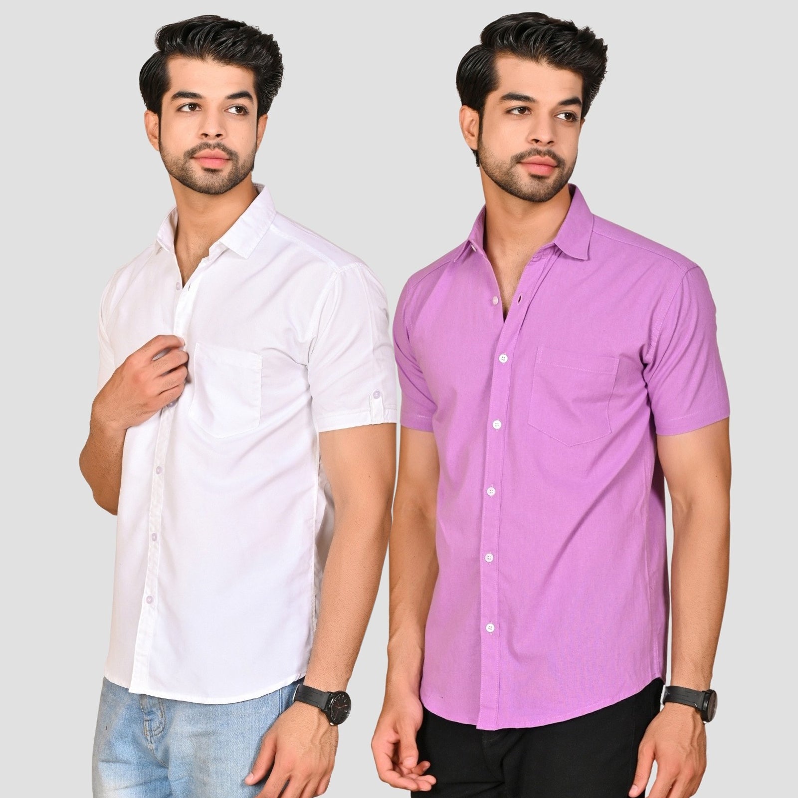 Upgrade your wardrobe with our Pack of 2 Men’s Half Sleeve Linen Shirts, designed for a stylish yet comfortable look. These shirts feature a classic spread collar and a smart button closure, making them versatile for both casual outings and semi-formal occasions. Crafted from high-quality linen fabric, they offer a breathable, lightweight feel perfect for all-day wear. The slim fit design ensures a modern, tailored appearance that complements your style effortlessly. Available in solid colors, this combo is ideal for pairing with jeans, trousers, or chinos. Whether for office wear, weekend gatherings, or evening dinners, this linen shirt set delivers both elegance and comfort. A must-have combo pack for men seeking timeless and functional fashion.