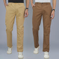 Pack Of 2 Beige And Brown Airy Linen Summer Cool Cotton Comfort Pants For Men